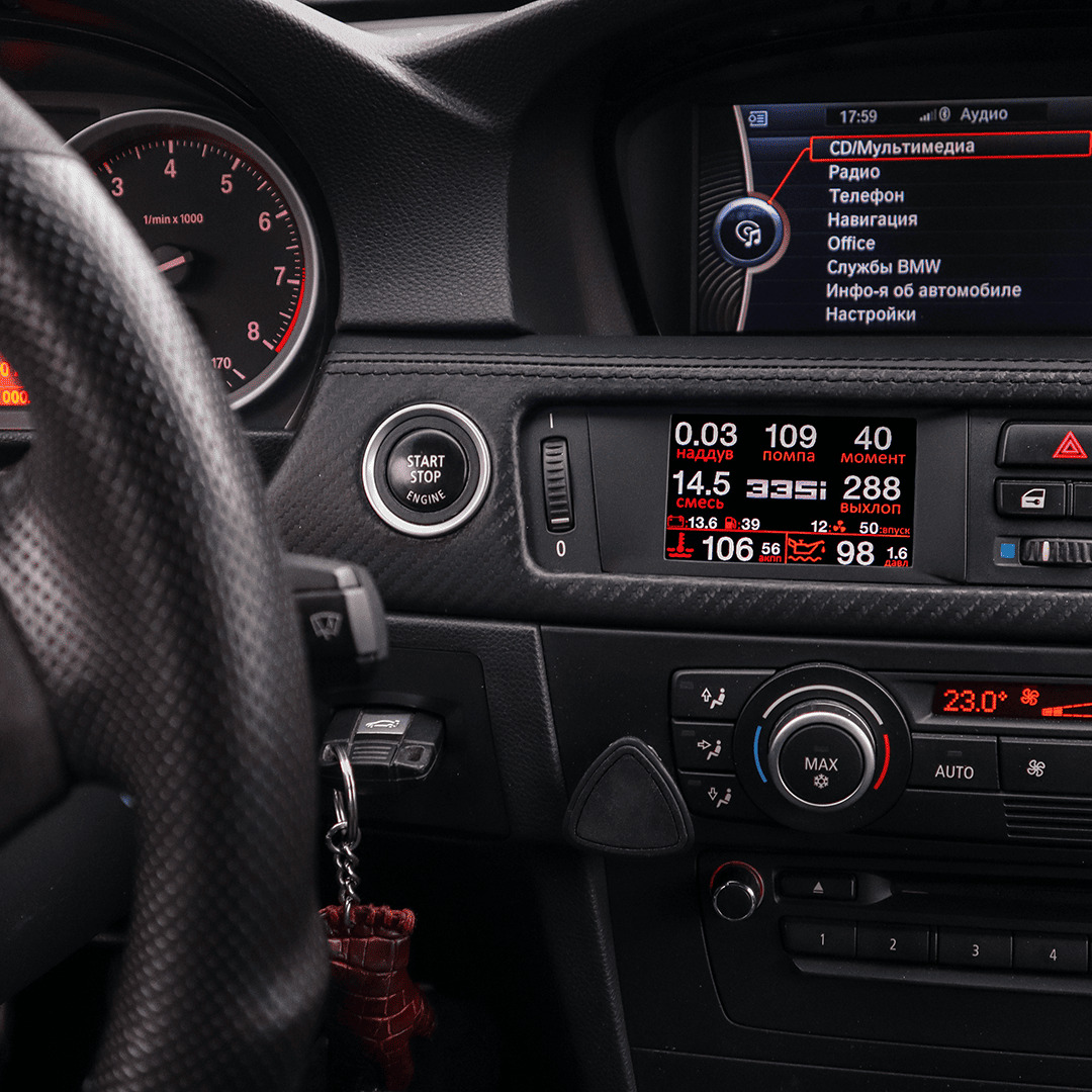 The system reads live data directly from the BMW ECU, turning your dashboard into a full ECU performance monitor.
