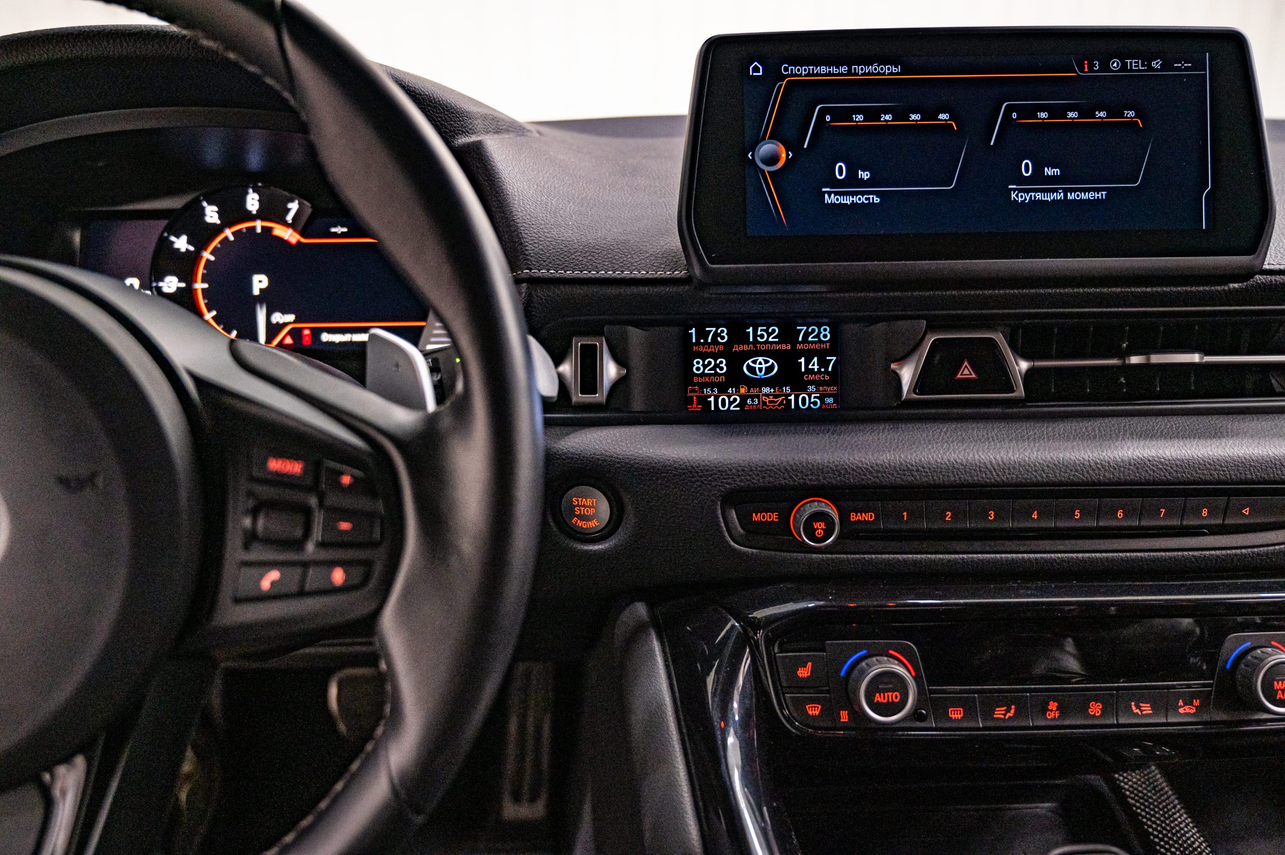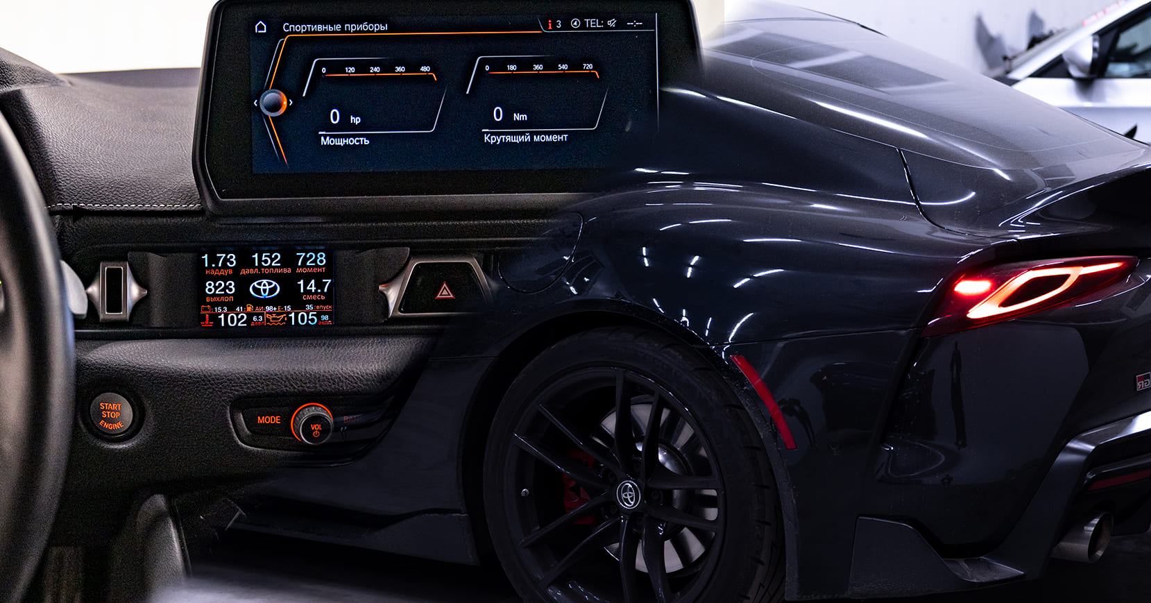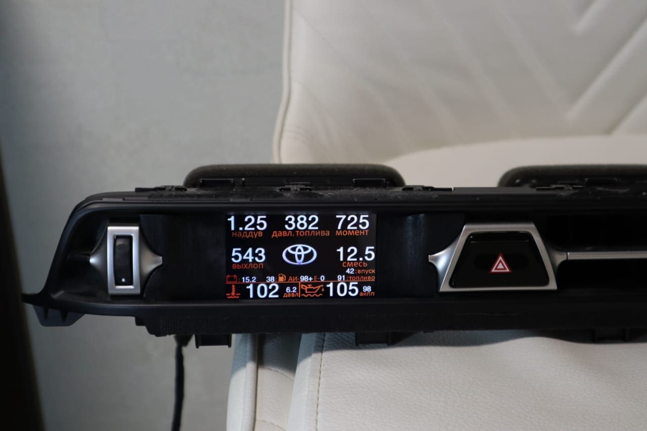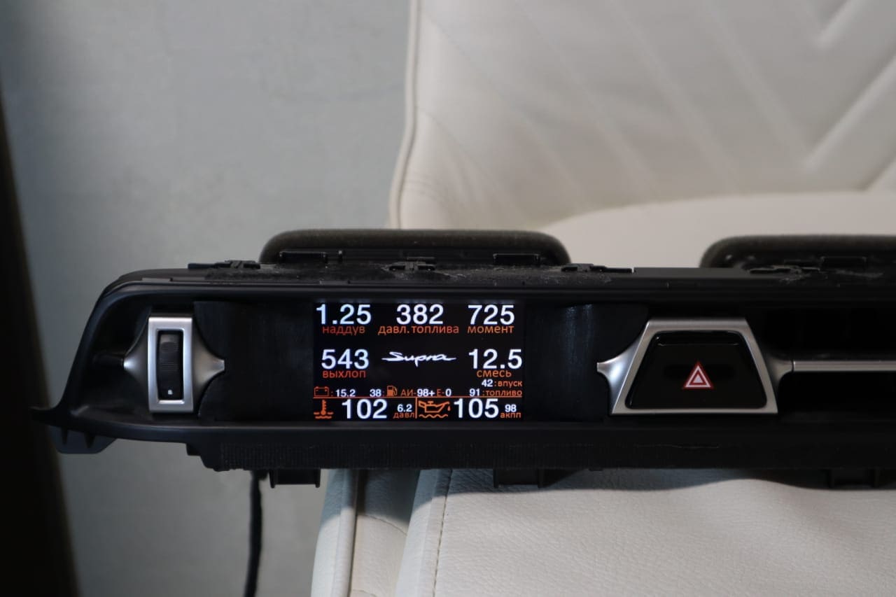 This Toyota Supra vent gauge display installs directly into the factory air vent and transforms it into a powerful ECU monitor, boost gauge and performance display.